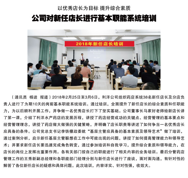 公司對新任店長進行基本職能系統(tǒng)培訓