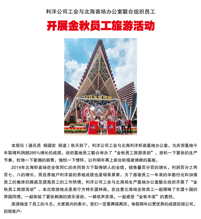 利洋公司工會與北海苗場辦公室聯(lián)合組織員工開展金秋員工旅游活動(dòng)