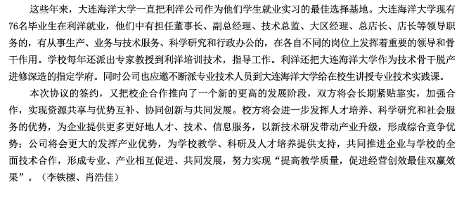 大連海洋大學(xué)與利洋公司簽訂校企合作協(xié)議 聯(lián)手打造“產(chǎn)學(xué)研合作聯(lián)合艦隊”
