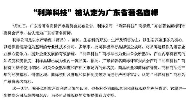 “利洋科技”被認(rèn)定為廣東省著名商標(biāo)