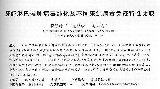 牙鲆淋巴囊腫病毒純化及不同來源病毒免疫特性比較