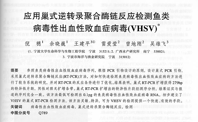 應(yīng)用巢式逆轉(zhuǎn)錄聚合酶鏈反應(yīng)監(jiān)測(cè)魚(yú)類病毒性出血性敗血癥病毒(VHSV)