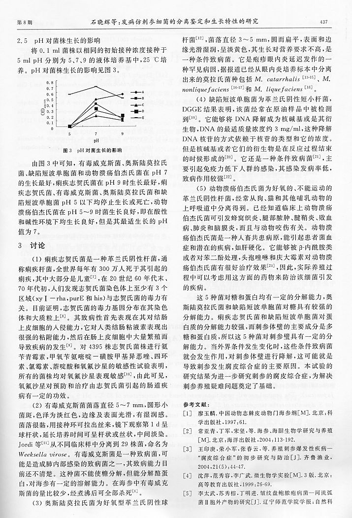 發(fā)病仿刺參細(xì)菌的分離鑒定和生長特性的研究3
