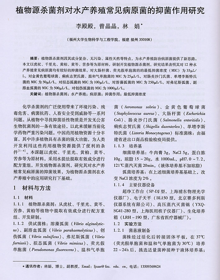 植物源殺菌劑對水產(chǎn)養(yǎng)殖常見病原菌的抑菌作用研究1