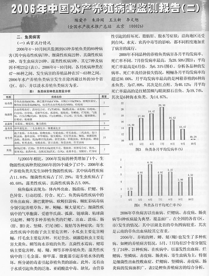 2006年中國水產(chǎn)養(yǎng)殖病害監(jiān)測(cè)報(bào)告(二)1
