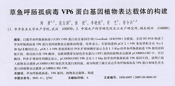 草魚呼腸孤病毒VP6蛋白基因植物表達載體的構(gòu)建