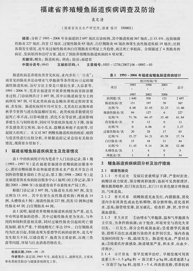 福建省養(yǎng)殖鰻魚(yú)腸道疾病調(diào)查及防治1