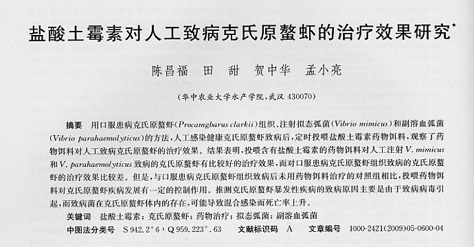 鹽酸土霉素對人工致病克氏原螯蝦的治療效果研究