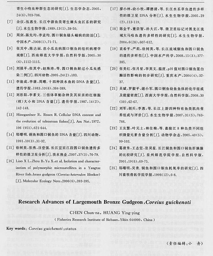 圓口銅魚的生物學(xué)及病害學(xué)等研究現(xiàn)狀4