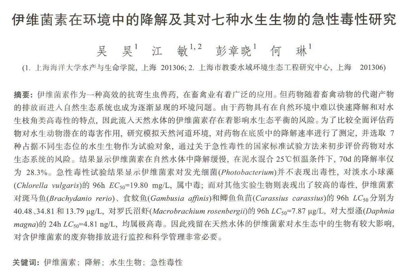 伊維菌素在環(huán)境中的降解及其地七種水生生物的急性毒性研究
