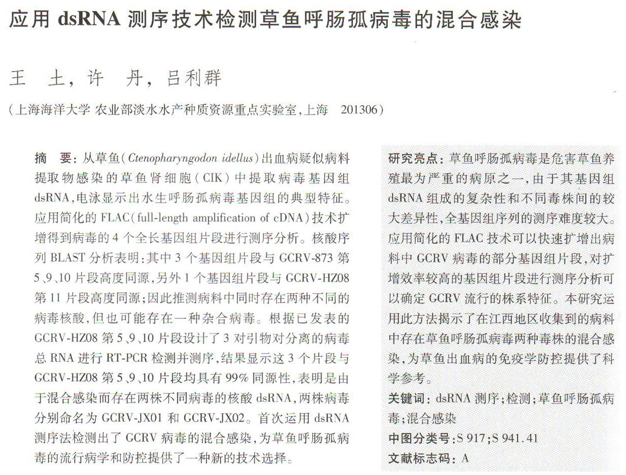 應(yīng)用dsRNA測序技術(shù)檢測草魚呼腸孤避毒的混合感染