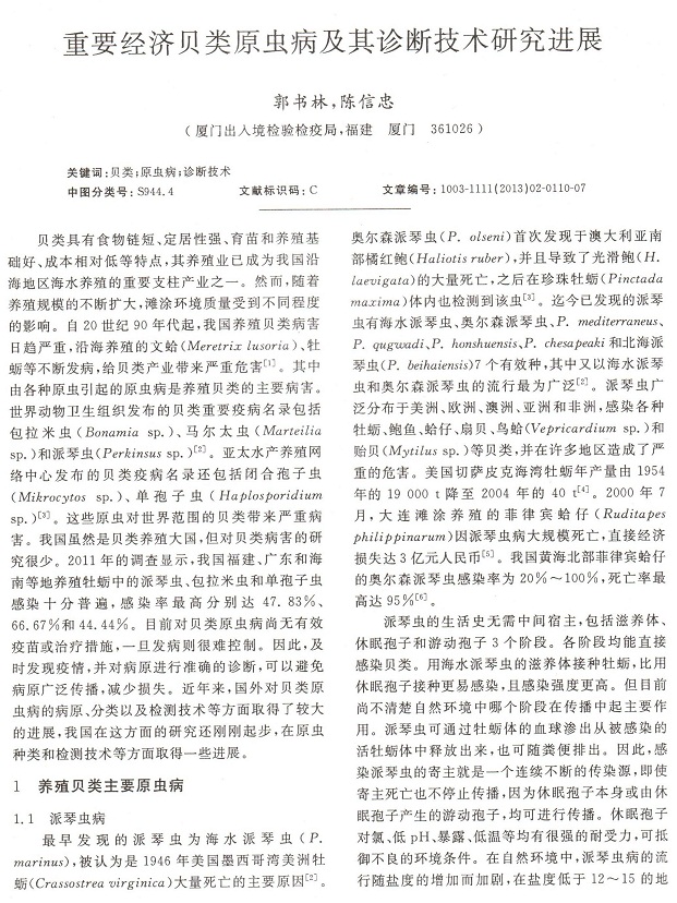 重要經(jīng)濟(jì)貝類(lèi)原蟲(chóng)病及其診斷技術(shù)研究進(jìn)展1