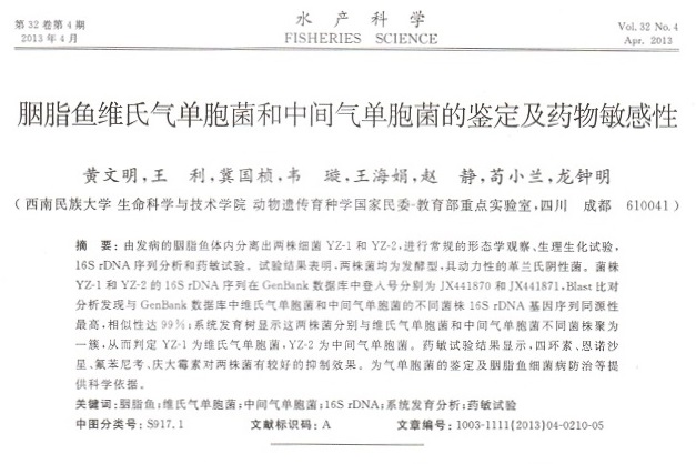 胭脂魚(yú)維氏氣單胞菌和中間氣單胞菌的鑒定及藥物敏感性