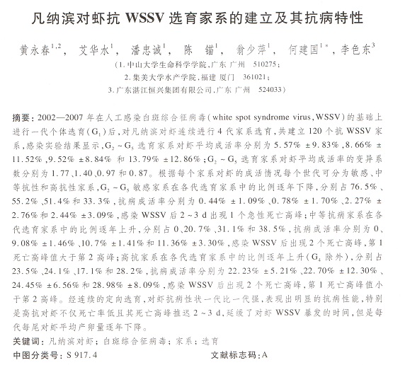 凡納濱對蝦抗WSSV選育家系的建立及其抗病特性