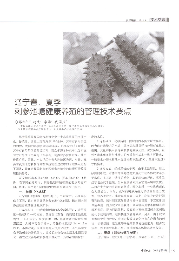 遼寧春、夏季刺參池塘健康養(yǎng)殖的管理技術(shù)要點