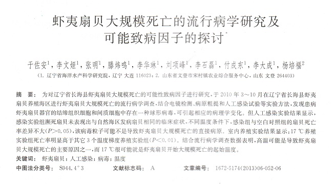 蝦夷扇貝大規(guī)模死亡的流行病學(xué)研究及可能致病因子的探討