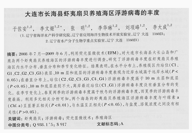 大連市長海縣蝦夷扇貝養(yǎng)殖海區(qū)浮游病毒的豐度