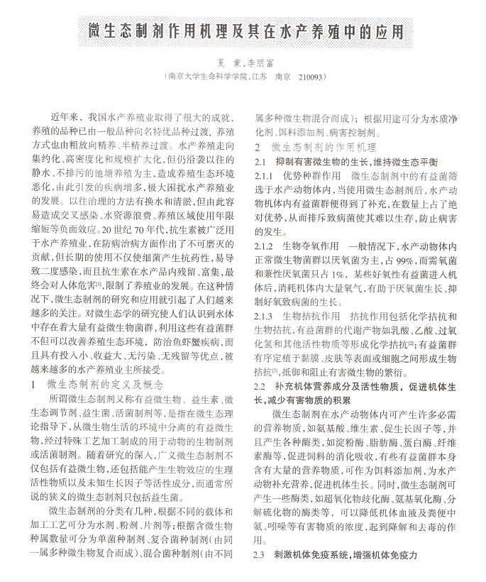 微生態(tài)制劑作用機理及其在水產(chǎn)養(yǎng)殖中的作用