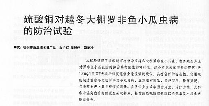 硫酸銅對越冬大棚羅非魚小瓜蟲病的防治試驗(yàn)