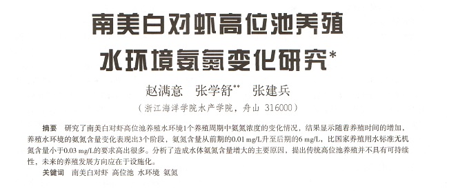 南美白對蝦高位池養(yǎng)殖水環(huán)境氨氮變化研究