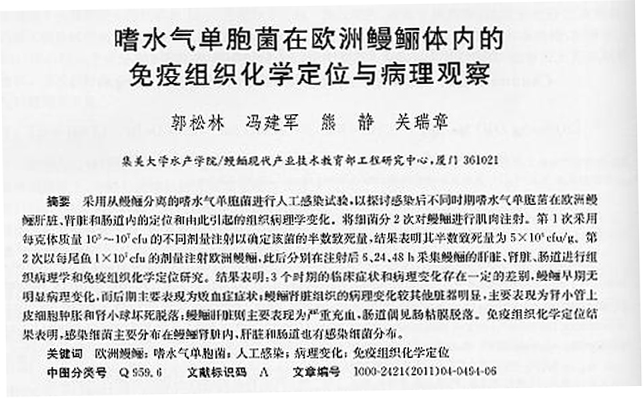 嗜水氣單胞菌在歐洲鰻鱺體內(nèi)的免疫組織化學(xué)定位與病理觀察