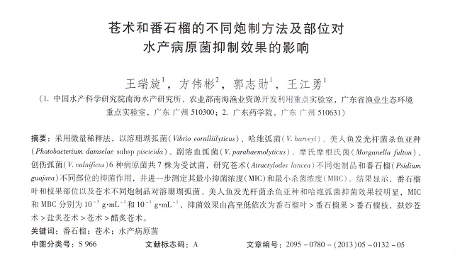 蒼術(shù)和番石榴的不同炮制方法及部位對水產(chǎn)病原菌抑制效果的影響