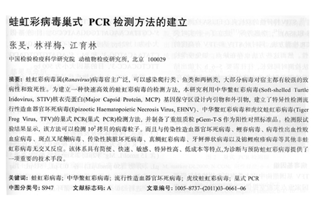蛙虹彩病毒巢式PCR檢測方法的建立