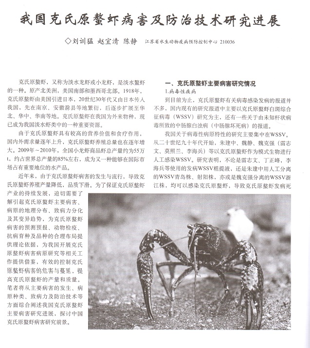 我國克氏原鰲蝦病害及防治技術(shù)研究進(jìn)展