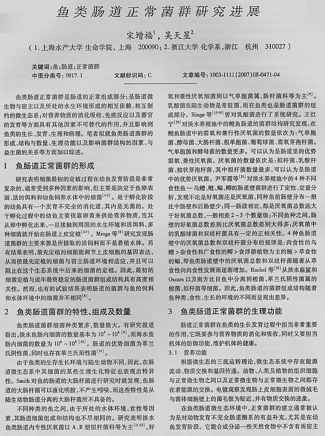 魚類腸道正常菌群研究進(jìn)展1