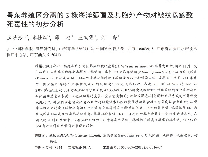 粵東養(yǎng)殖區(qū)分離的2株海洋弧菌及其胞外產(chǎn)物對皺紋盤鮑致死毒性的初步分析