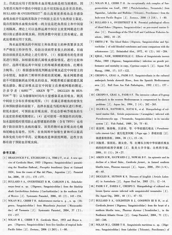 海水魚血居科Sanguinicolidae吸蟲病的研究現(xiàn)狀6