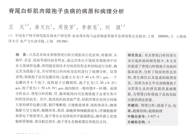 脊尾白對(duì)蝦肌肉微孢子蟲病的病原和病理分析