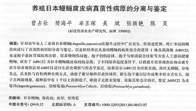 養(yǎng)殖日本鰻鱺腐皮病真菌性病原的分離與鑒定