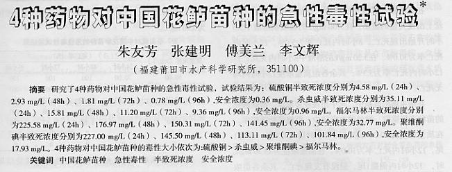 4種藥物對中國花鱸苗種的急性毒性實(shí)驗(yàn)