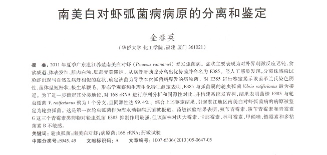 南美白對(duì)蝦弧菌病病原的分離和鑒定