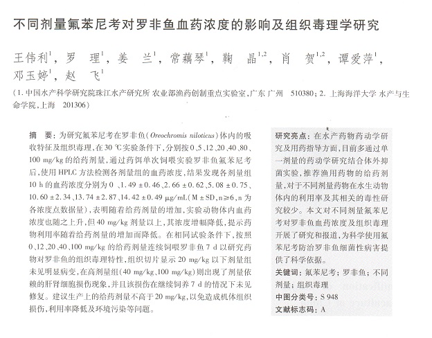不同劑量氟苯尼考對羅非魚血藥濃度的影響及組織毒理學(xué)研究