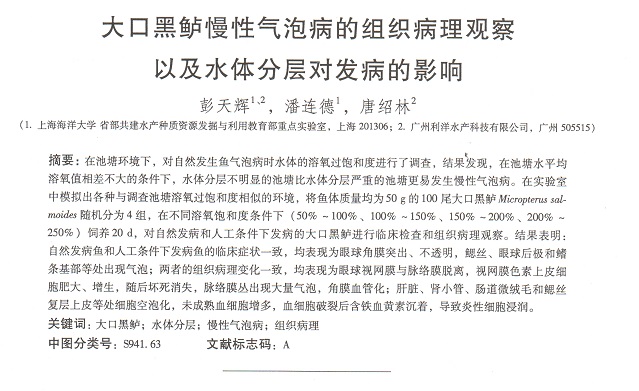 大口黑鱸慢性氣泡病的組織病理觀察以及水體分層對發(fā)病的影響