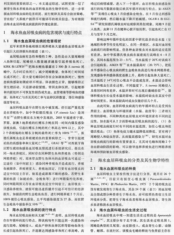 海水魚血居科Sanguinicolidae吸蟲病的研究現(xiàn)狀2