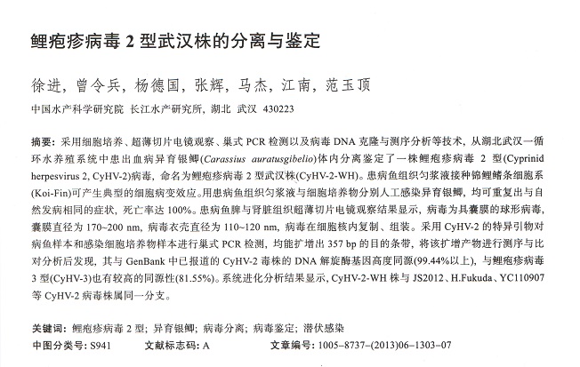 鯉皰疹病毒2型武漢株的分離與鑒定
