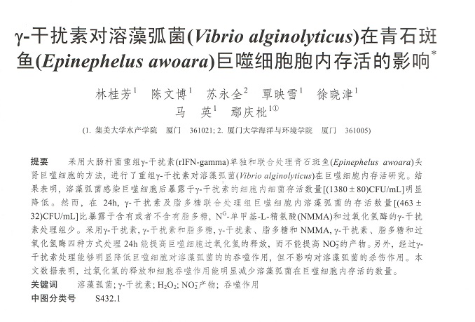 γ-干擾素對溶藻弧菌(vibrioalginolyticus)在青石斑魚(Epinephelusawoara)巨噬細(xì)胞胞內(nèi)存活的影響