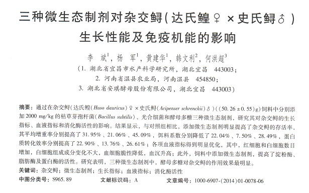 三種微生態(tài)制劑對雜交鱘(達(dá)氏鰉♀×史氏鱘♂)生長性能及免疫機(jī)能的影響