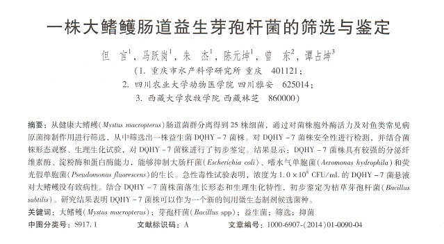 一株大鰭鳠腸道益生芽孢桿菌的篩選與鑒定