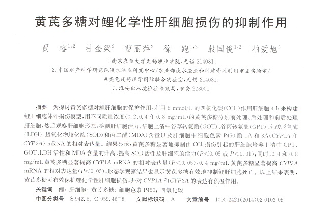 黃芪多糖對鯉化學(xué)性肝細(xì)胞損傷的抑制作用