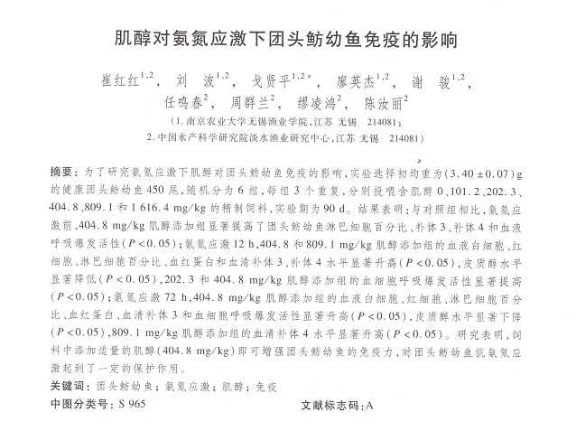 肌醇對(duì)氨氮應(yīng)激下團(tuán)頭魴幼魚(yú)免疫的影響