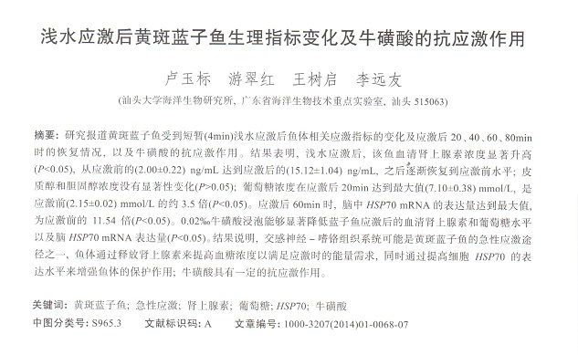 淺水應激后黃斑藍子魚生理指標變化及?;撬岬目箲ぷ饔?/div>