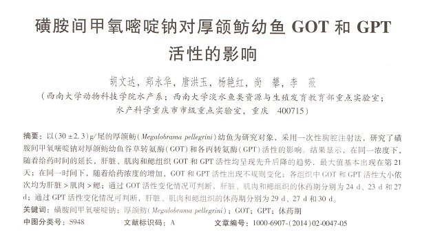 磺胺間甲氧嘧啶鈉對(duì)厚頜魴幼魚GOTR和GPT活性的影響