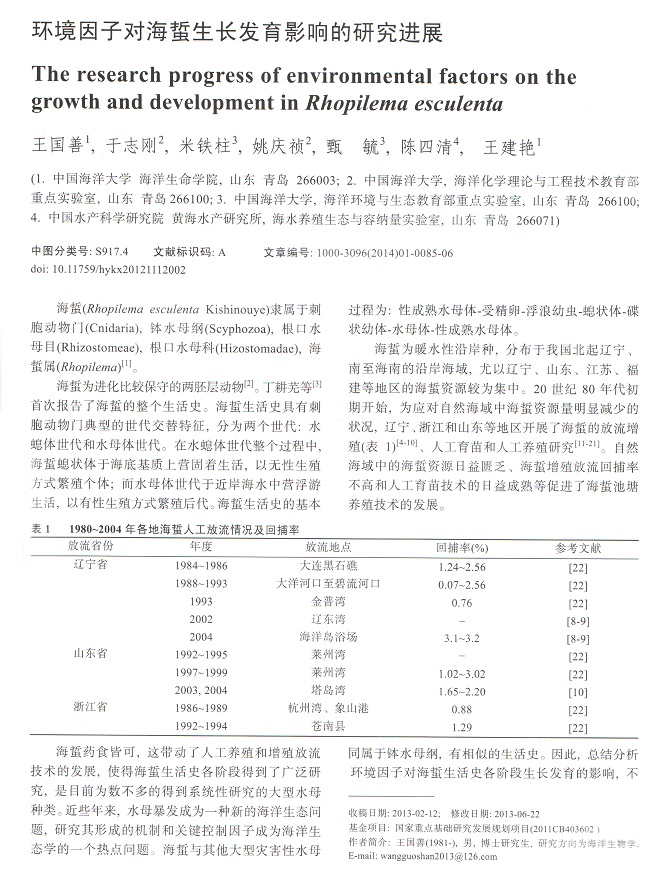 環(huán)境因子對海蜇生長發(fā)育影響的研究進(jìn)展