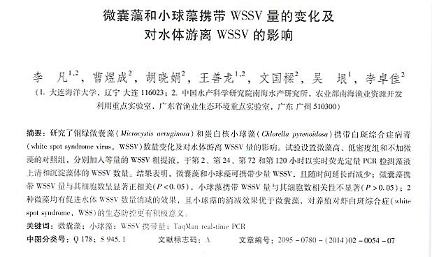 微囊藻和小球藻攜帶WSSV量的變化及對水體游離WSSV的影響
