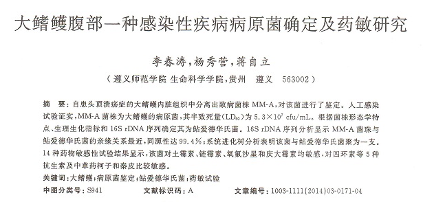 大鰭鳠腹部一種感染性疾病病原菌確定及藥敏研究