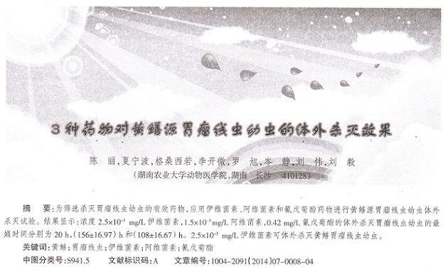 3種藥物對(duì)黃鱔源胃瘤線蟲幼蟲的體外殺滅效果